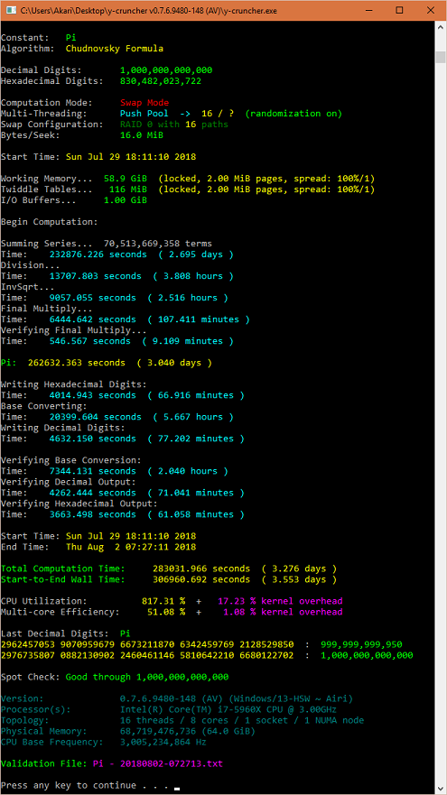 y-cruncher - A Multi-Threaded Pi-Program |