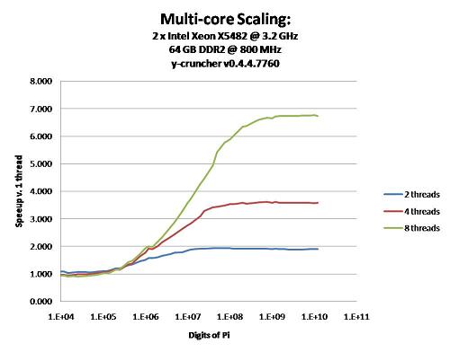 Note that when comparing these benchmarks to that of previous versions of y-cruncher, it appears that multi-core scaling is worse in newer versions.